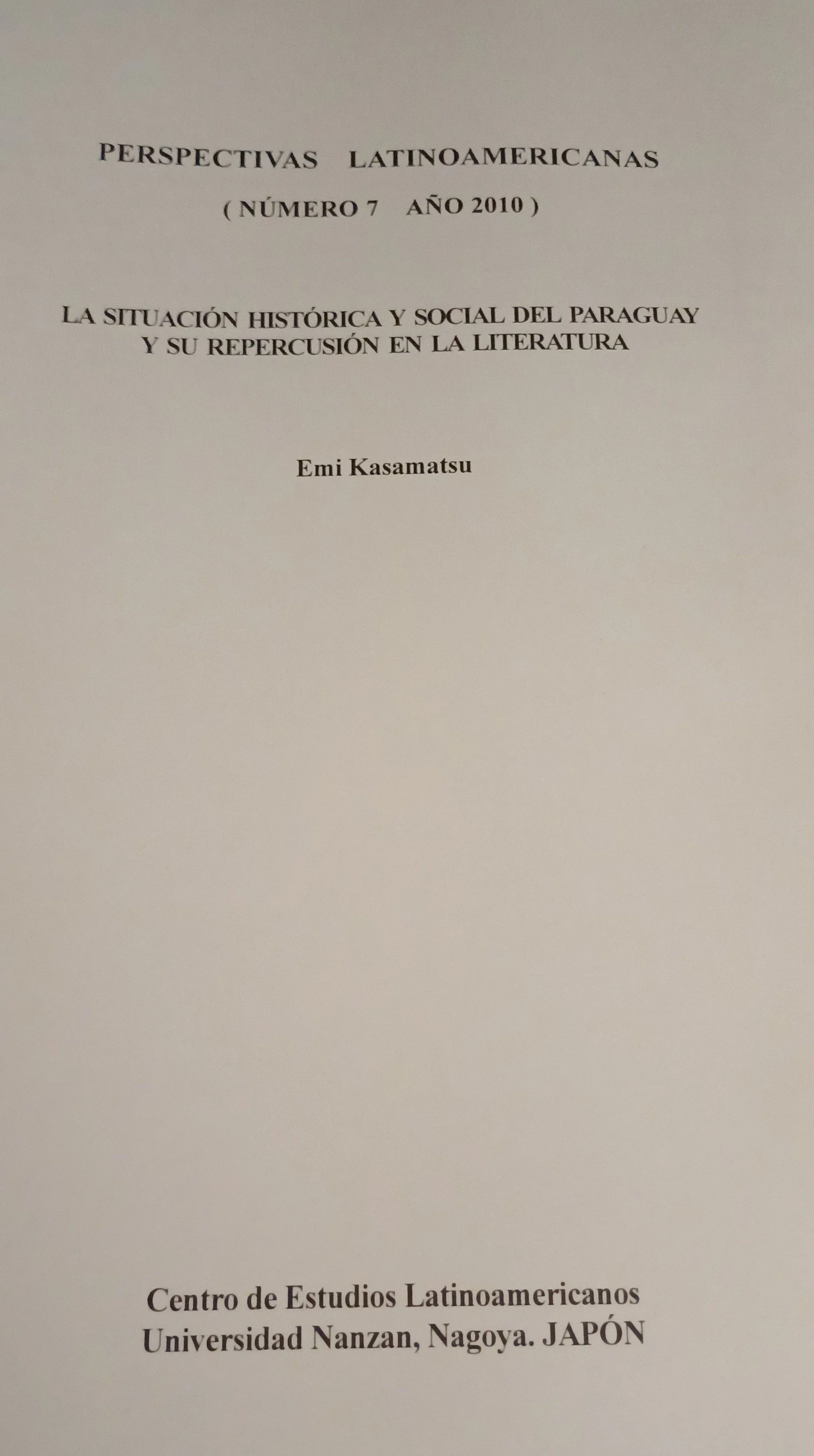 Emi Kasamatsu escribió: La situación histórica y social del Paraguay y su repercusión en la Literatura